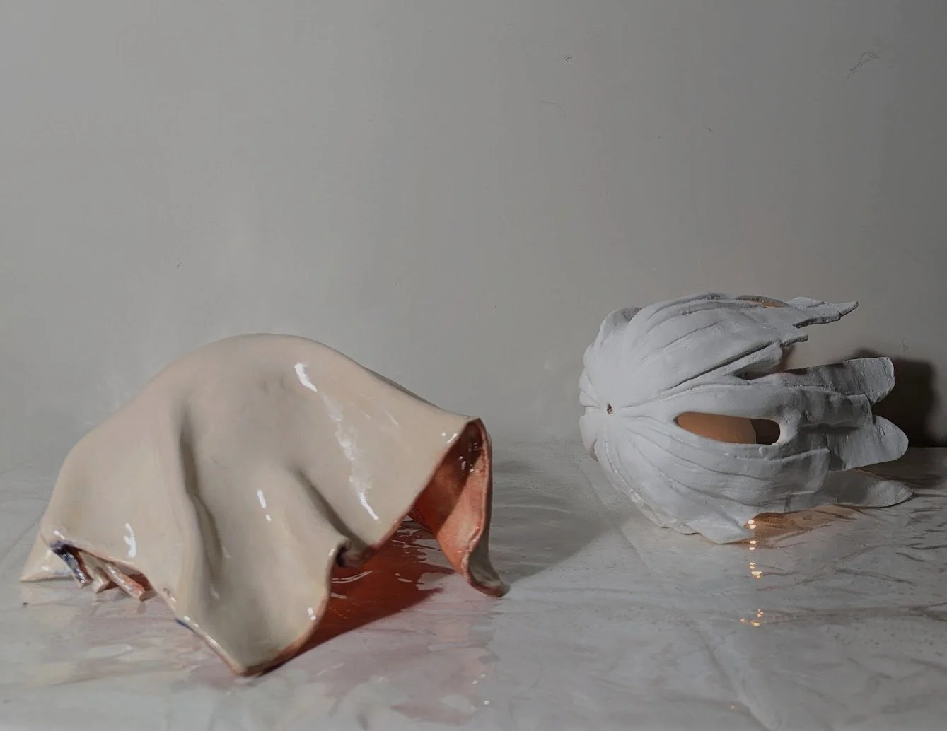 prototype ceramic sound sculptures inspired by antique hearing aids and hearing trumpets.